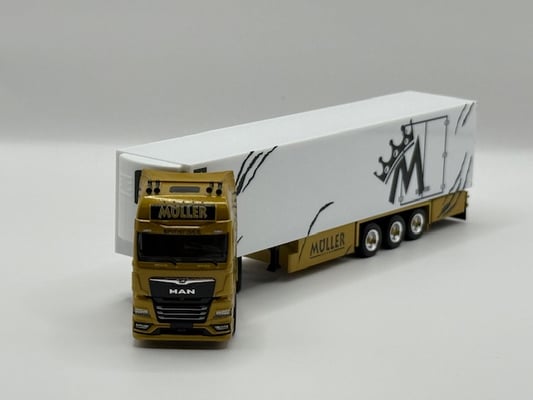 Müller "Golden Commander", MAN TGX GX EuroKüKoAufl (CH) -Goldmetalliclackierung + Klarlack (zweifach handlackiert)-