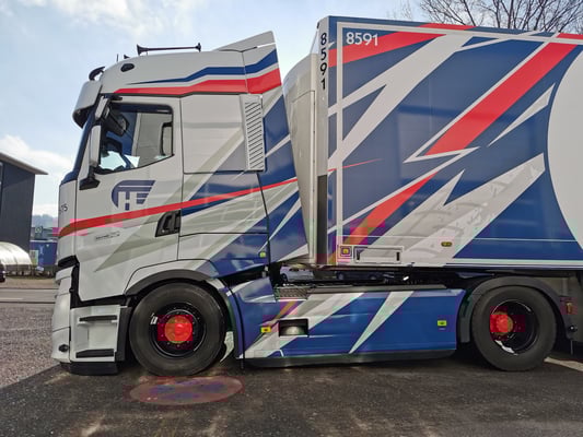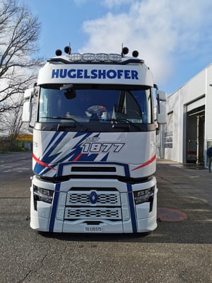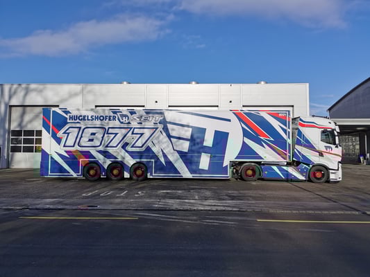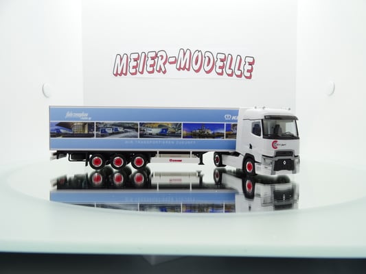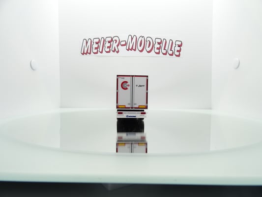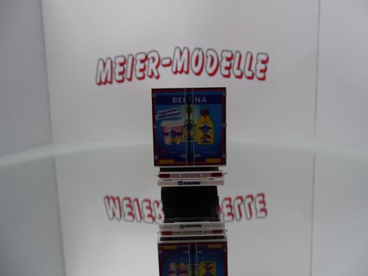 Die Werbung auf dem Auflieger wurde extra für die Schweiz hergestellt zur Messe in Bern.Diesen Auflieger mit Werbung gibt es nur einmal im Original.Modell wird in OVP mit Spiegel geliefert.