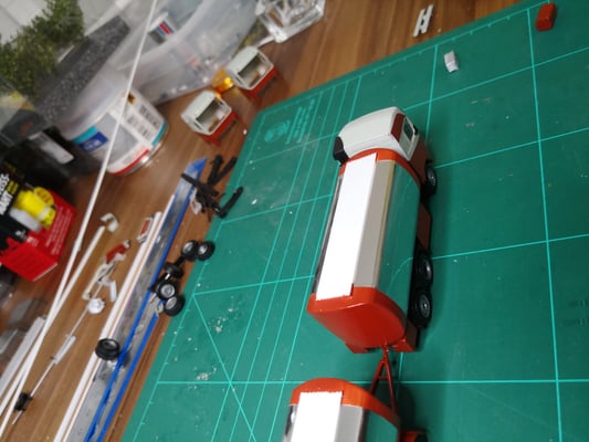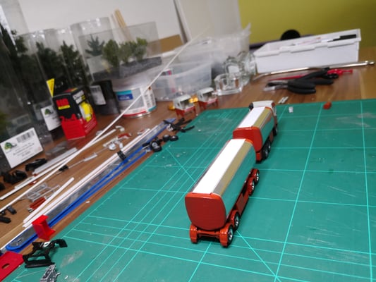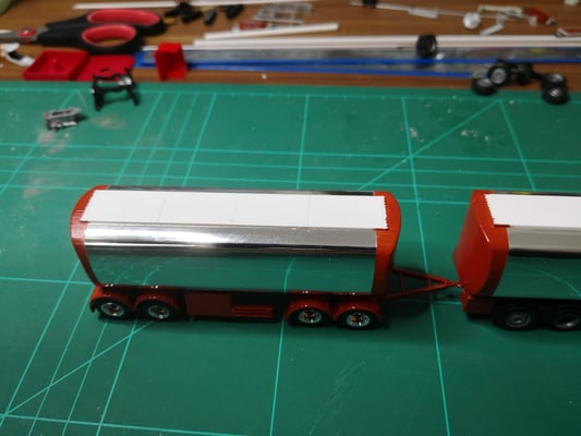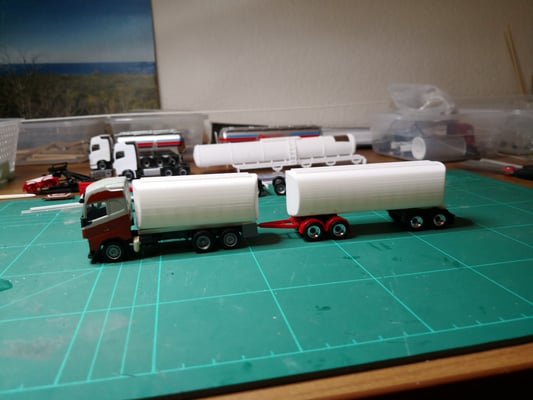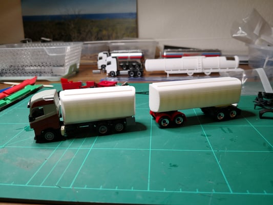 Nachdem ich das PU Material für die Schmieroelaufbauten sehr lange und mühsam schleifen musste bis das Resultat dann doch nicht ganz meinen Ansprüchen genügte ging ich auf die Suche nach einer anderen Variante die seltenen Aufbauten zu bauen.